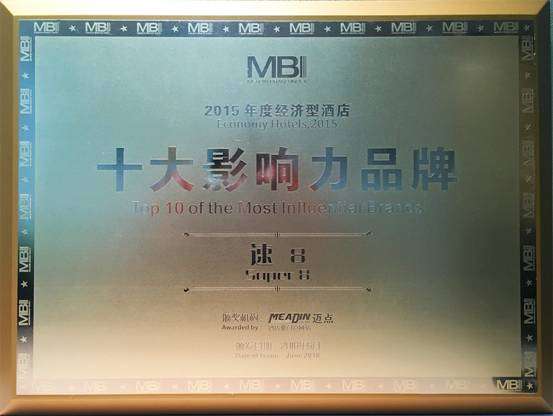 速8酒店凭借2015年在经济型酒店领域的优秀表现,获得“2015年度10大影响力经济型酒店品牌”,这也是速8酒店连续四年获此殊荣。
