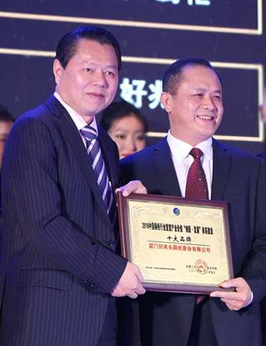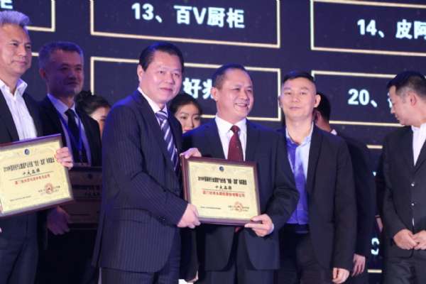 好兆头橱柜获得“十大品牌”董事长陈加栋上台领奖