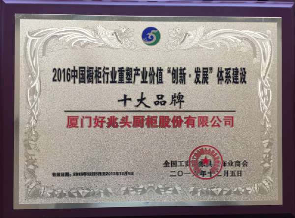 在中国橱柜行业重塑产业链价值体系建设表彰大会上,好兆头厨柜再次荣获“十大品牌”奖。这一殊荣也将继续督促着好兆头人,继续以专业厨柜领先品牌的姿态走在行业前列,引领中国定制橱柜业发展!