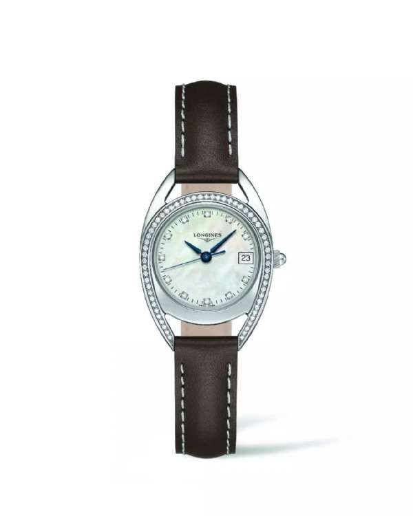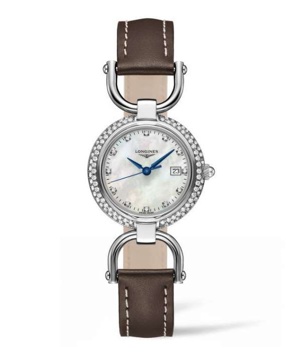 延续品牌长久以来对马术运动的敬意和对女性顾客的重视,浪琴表推出全新骑仕系列腕表(Longines Equestrian),其形状和材质皆从马术运动的标志性元素汲取灵感。该款拱形腕表直径26毫米,精钢镶钻表壳内藏石英机芯。珍珠贝母表盘皆镶嵌钻石时标,搭配蓝钢指针,缝合皮革表带配衬骑手服。