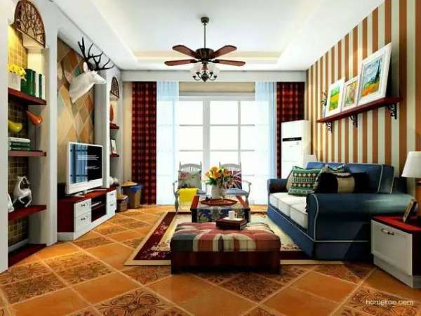 想让电视柜有简单活泼的风格,那就不要用柜子把它们填满,用开放式柜子打造出轻松的感觉。