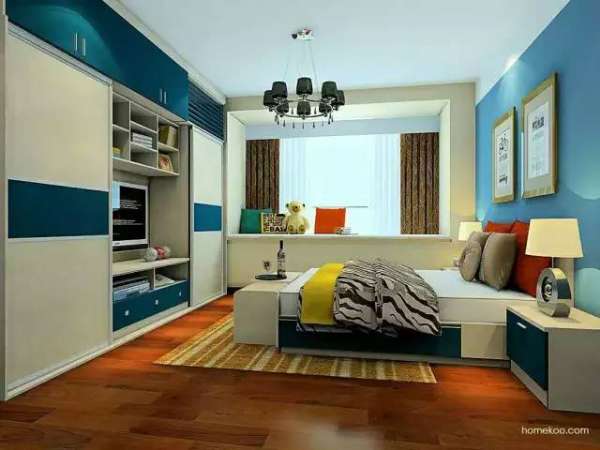 藏在衣柜里的电视柜?恩,准确来说是二合一的设计吧!用趟门一合上就能保持房间墙完整性,感觉十分新颖。