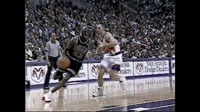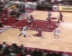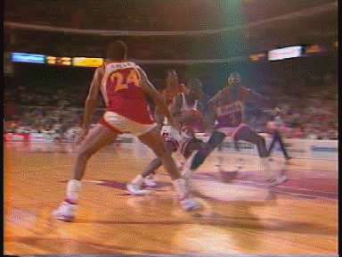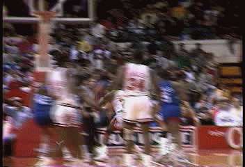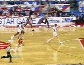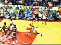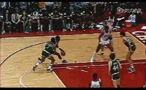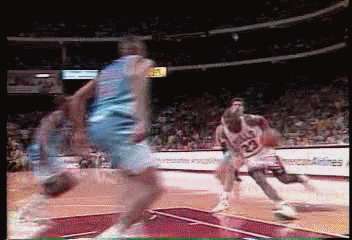 防守人员想盖帽,但根本等不到乔丹出手的机会