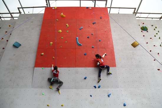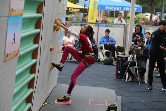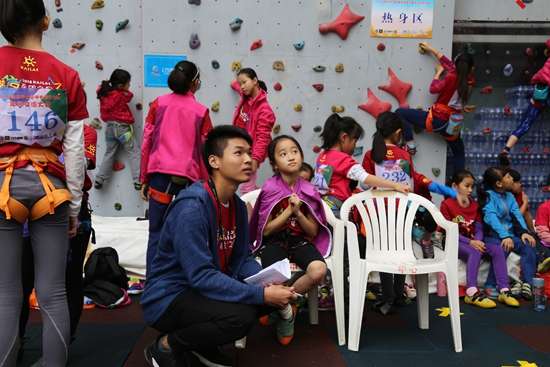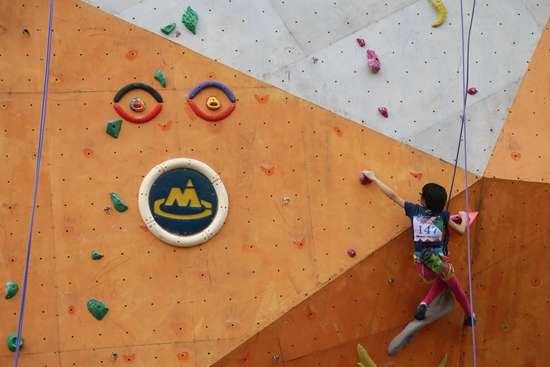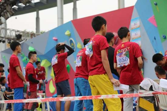 比赛中青少年标准速度赛道正式亮相,线路采用的支点是根据我国青少年攀岩规范研发的。