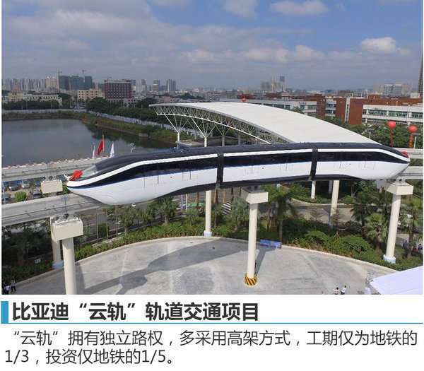 “云轨”是比亚迪继IT、汽车、新能源之后的第四个产业,也是继太阳能、储能电站、新能源汽车之后的第四个绿色目标,对于城市打造立体化交通、补充现有交通体系具有重大而深远意义。2016年10月13日,“云轨”在深圳坪山总部实现首次发布并正式通车。