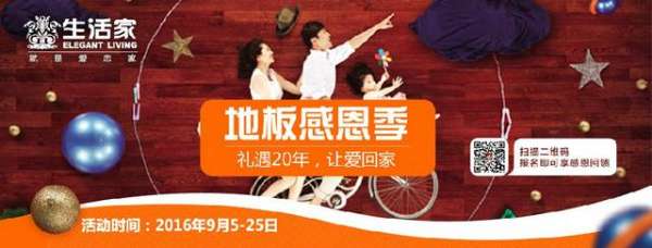 为此,生活家于9月5日—25日与腾讯新闻合作,推出“地板感恩季——礼遇20年,让爱回家”大型促销活动。本次活动结合线上线下进行推广,上演一场颠覆之战。线上报名将有豪礼相送;推出生活家爆款产品——原素系列,直降5折;更有20个免单金额等你来拿。
