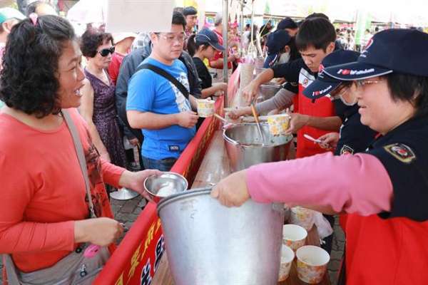 2016万丹红豆牛奶节31日登场,饭汤比赛再度成为全场焦点,民眾争相品嚐美食。(谢佳潾摄)