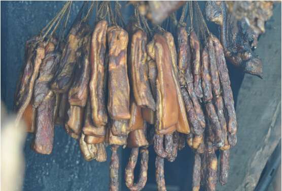 杨大爷既尊重传统又积极创新,在古法制作的基础上优化,改良后的手工艺,不仅用柏树枝烘烤且先用文火烘烤,再转入大火烘烤,烘烤至八成干时,移到烘房外晾挂即可,这样不仅色香味俱全,使得腊味十足的同时,更健康更美味!