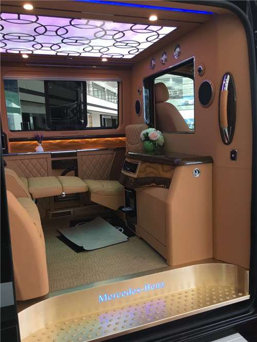 内饰方面:奔驰斯宾特中控台的样式很奔驰,按钮布局清晰,简单易用,选材和做工都很符合其商用车的定位。踏入新车车门的一瞬间,立刻感觉一股浓郁的皇家气息扑面而来,让人真真切切的感受到豪华与实用的和谐统一,恰如欣赏一件浑然天成的艺术品。车内犹如一间别墅,设备齐备五脏俱全。奔驰斯宾特房车其间随车配备的圆润的仪表盘、简练清楚的控制台、真皮豪华J型座椅以及车内转换镭射灯光与可变色的车顶满天星五颜六色灯光天然不用多言。