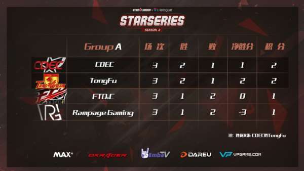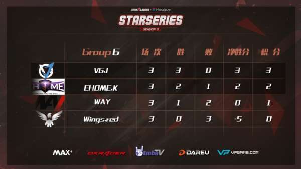 小组赛所有战队通过抽签分为7组,小组内进行单循环BO3积分赛,每组积分前二的队伍将晋级第三阶段淘汰赛。最终A组CDEC 、Tongfu;B组IG、DuoBao;C组Ehome、CG;D组LGD、VGP;E组FTD.A、Bheart.Z;F组VG、IG.V;G组VGJ、Ehome.K这14支战队晋级淘汰赛。