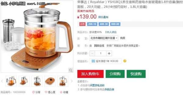 是在1600多度下熔制的,主要原料是硼和硅,无任何重金属添加剂,具有耐高温、耐急冷急热、耐酸耐碱、质量稳定的特性,不产生任何化学变化及有害物质,为你的健康保驾护航。养生壶有功能简单,性价比高的;有功能多,操作简便的;也有容量小,适合办公室煮茶用的;还有容量超大的,全家都够用的;可以满足不同消费者的各种需求。下面推荐一款现阶段性价比高的养生壶,荣事达YSH18Q1养生壶售价139元