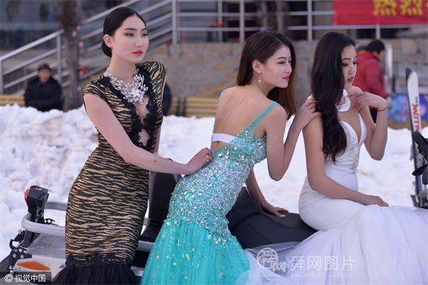 山东:旅游小姐雪地大露香肩美腿 不惧严寒美丽“冻”人