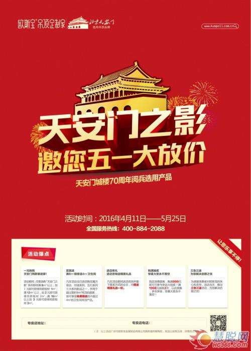 活动期间,任意选购“天安门之影”系列板材满16平方以上加3元即可获得同款板材3平方。