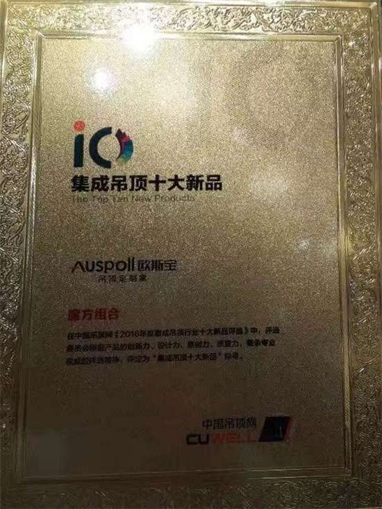 欧斯宝荣获2016年中国厨卫百强集成吊顶领军企业10强,这一荣誉充分肯定和褒奖了欧斯宝专注厨卫吊顶的辉煌与卓越贡献,更充分见证了欧斯宝品牌的实力与深刻影响。
