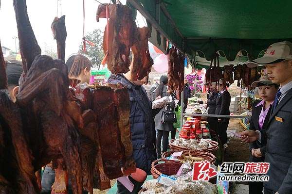 生活中最常见的时令蔬菜、当季水果、熏制腊肉等美食现场展出。