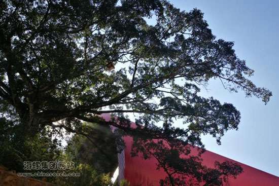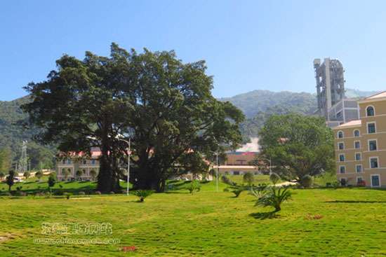 厂区规划范围之内有一棵参天的古榕树,被当地百姓视作神树,时常有人前往参拜。海螺水泥盈江公司为了尊重当地风俗,不影响百姓参拜,特地为这棵树修了一道U形的围墙。