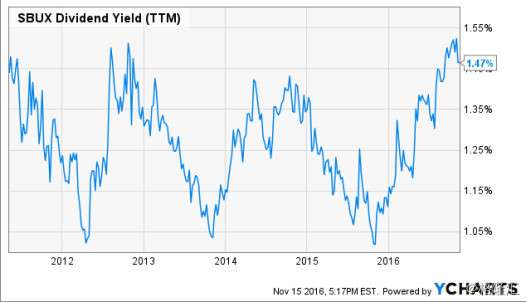 首先,2016年全球店铺强劲的同店销售额是因为提价的缘故,但是客流量基本上是持平的。因此,我们也可以看出消费者对于星巴克的品牌忠诚度有多强大,这一点太重要了,毕竟随着时间的流逝,要保持长期的同店销售额的增长以及股息的增长,都离不开每家店的客流量。