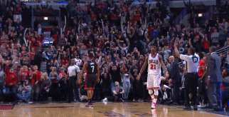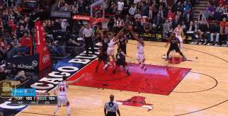 最神奇的是,在第四节最后42秒,巴特勒12尺跳投不中,但是他神奇地抢下了关键的前场篮板,然后回传给外线的韦德,韦德又传给了右侧45度埋伏的迈克德莫特,后者命中27尺外的三分,将比分反超为107-105,这一球也是公牛进入加时赛的保证。