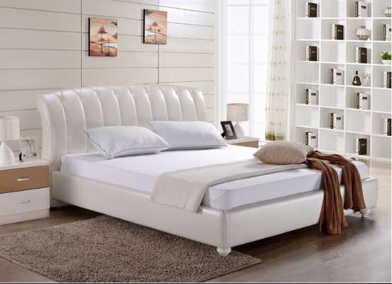 XBR-A012弧形真皮靠背,简约款定制床。