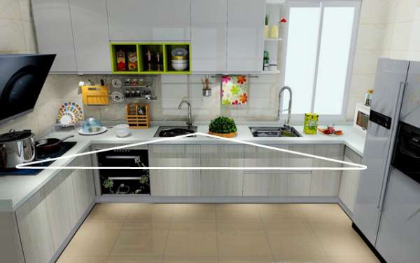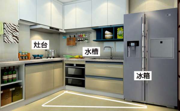 冰箱、水槽、灶台之间成三角路线是最好走的,这也就是设计师说的