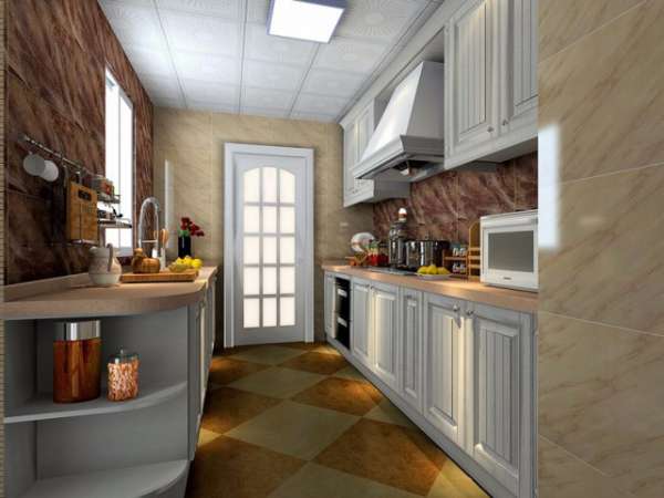 因为厨房墙两面摆放了各种家具和电器,为了能方便地-打开两边家具的柜门,就一定要保证至少留出120cm,灶台和水槽再相对错开,才不会影响两个人的同时操作。