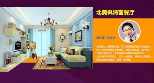 尚品宅配设计团队案例1:改风格为北风枫情系列。百叶面板搭配英伦白橡的板材,客厅电视柜到装饰柜兼酒柜,储物实用具备。餐厅做了卡座形式的设计,不但实用而且美观具有定制性,让空间的利用率更大,加以一些碎花、格纹的纹理装饰,配上淡黄色的墙漆,别有一番风情。