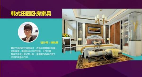 尚品宅配设计团队案例2:黄色气派的欧式风格设计,衣柜与圆弧展示相接,定制性强,电视柜设计左右对称,大气沉稳,整体空间设计欧式风十足,采用黄白色系凸显了空间的辉煌与气派。