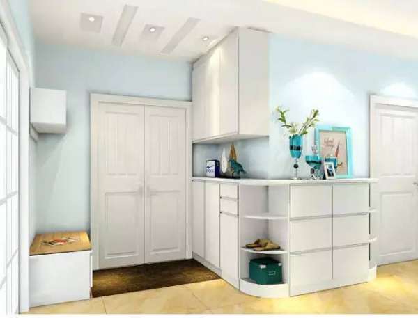 ① 在进门玄关边角区域可以定做设计一个功能鞋柜,这样有效的收纳好鞋包,雨具和小型运动器材等物品,大大的减少了客厅的空间收纳负担。 ② 多功能鞋柜可以安装百叶门,这样一来不仅透气,而且又整齐美观。