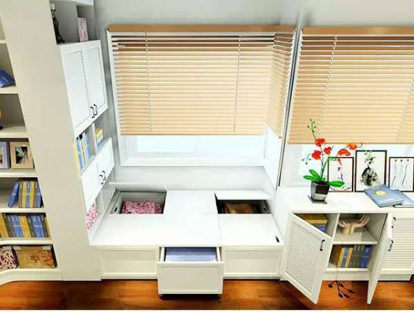 飘窗的榻榻米设计,不止是为了拥有充足的光线,更多的是考虑到业主的收纳需求。