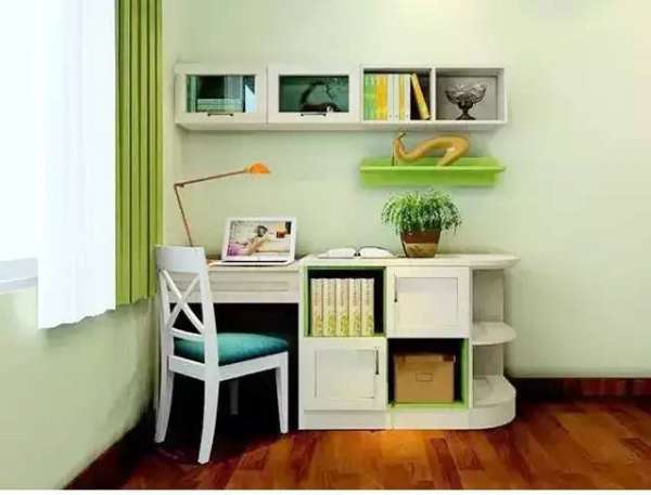 对于存在转角位的空间千万不要放弃,这个地方可以进行量身定制设计一款书桌或书柜,不仅解决了空间利用的问题,而且也提升了整体空间装修设计效果。