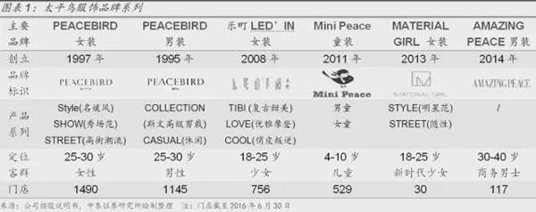 牌梯队,核心品牌为Peacebird