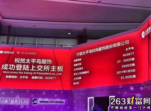 据最新消息,今日我国自主服装品牌太平鸟(603877)正式登陆上交所,股票代码:SH603877,证券简称为太平鸟。预计募集的资金为10.81亿元。