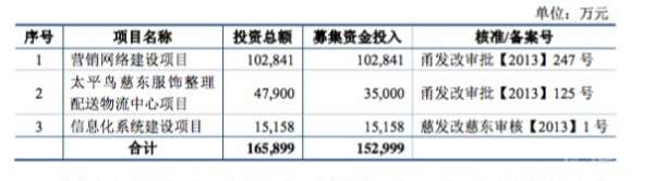 太平鸟首次将发行5500万股,占总股本的比例不超过20%。募投资金将主要聚焦于营销网络建设、太平鸟慈东服饰整理配送物流中心以及
