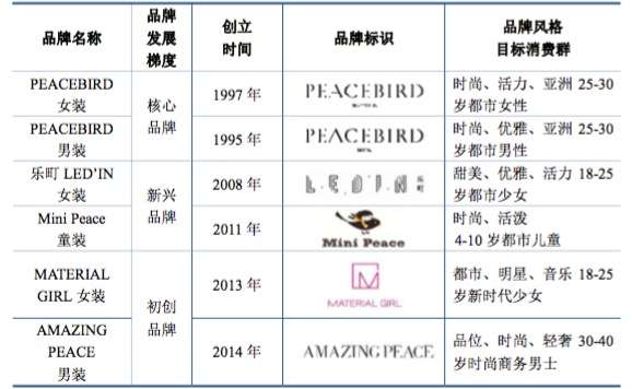 太平鸟旗下拥有六大品牌,其中包括PEACEBIRD