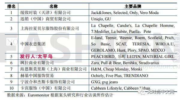 的企业只有五家,除太平鸟外,其余四间分别为国际知名服饰巨头绫致、迅销中国、Zara中国、H&M中国。
