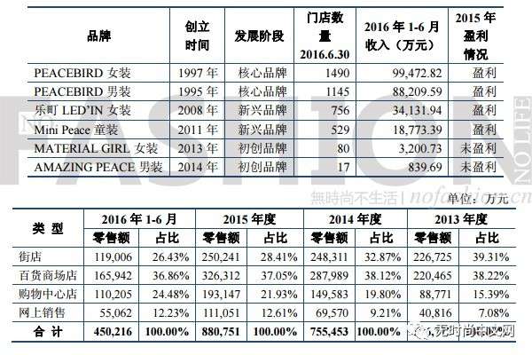 太平鸟过去三年半各品牌、渠道表现
