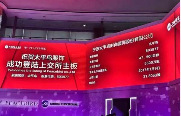 新年伊始,来自浙江宁波的 服饰 品牌——太平鸟,将秀场搬到了上海证券交易所的敲钟现场。1月9日上午9时30分,太平鸟董事长张江平敲响开市金锣,太平鸟(股票代码:SH603877,简称:太平鸟)成为2017年首家登陆A股主板市场的服饰企业。