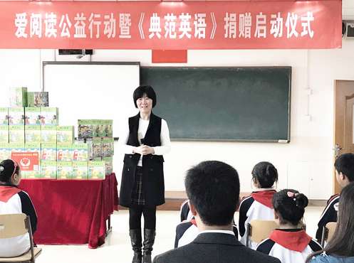 捐赠仪式结束后,教育部《中国基础英语素质教育的途径与方法》课题组研究员连艳普老师为学生们带来了一堂精彩的典范英语互动课堂。本次活动中捐赠的《典范英语·大字本》,将成为他们学习过程中颇有助益的工具书,也期待孩子们学习可以更上一层楼。