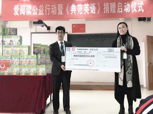 近日,中华少年儿童慈善救助基金会(以下简称:中华儿慈会)携手北京弘书阁教育科技有限公司(以下简称:弘书阁教育),在北京市朝阳区安民学校小武基校区举行了《典范英语·大字本》捐赠仪式,爱阅读助益百所小学公益行动拉开序幕。据悉,此次活动将向全国百所小学图书馆捐赠《典范英语·大字本》系列图书,首批捐赠15万余册,价值100万元,许多师生将从中获益。