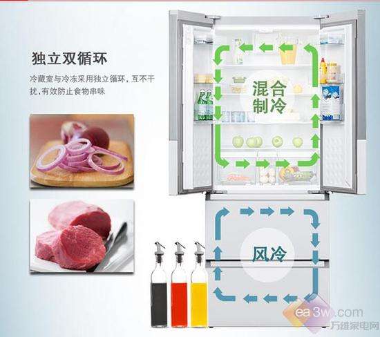 冰箱采用混合冷动力制冷,冷藏保湿保鲜,冷冻风冷无霜。冷藏室与冷冻室采用独立循环,互不干扰,有效防止食物串味。冷冻室采用风冷技术,让你告别冰霜困扰,储存多种食物。