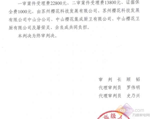 9月5日,G20峰会圆满落幕,令人振奋。与此同时,与杭州仅一个半小时车程的SAKURA樱花昆山总部,也传来好消息:江苏省高级人民法院做出终审判决,在与苏州樱花科技发展有限公司(简称苏州樱花)、中山樱花集成厨卫有限公司(简称中山樱花集成厨卫)、中山樱花卫厨有限公司(简称中山樱花)、苏州樱花科技发展有限公司中山分公司(简称苏州樱花中山分公司)等四家公司的侵权大战中,SAKURA樱花大获全胜!