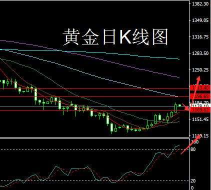 黄金:从黄金日K线图看:昨日黄金依托着MA5均线支撑继续反弹,总体走势稍强,现在短期均线在低位形成金叉后快速往上运行,指标也在继续上行中,总体表明多头力量强劲;但是4小时图中指标已经钝化后开始往下运行,所以估计黄金会先修正指标后再继续冲高,关注上方压力1196,1213,下方支撑于1169-1172区间,由于今晚将公布美国非农,故笔者微信号ldzf8686建议谨慎交易,稳健者观望。