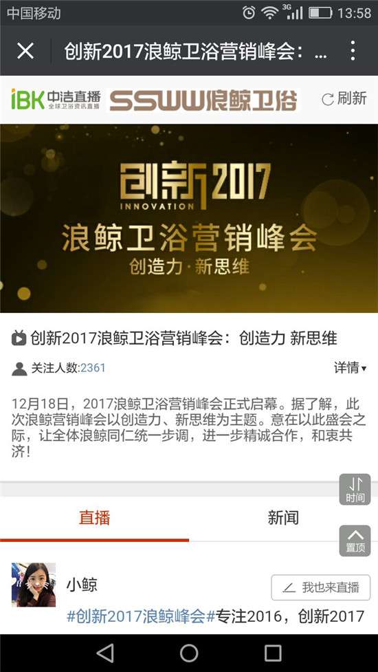 考虑到大家的手机流量珍贵,会议现场还有很多的亮点没来得及给大家分享,不过我们在营销峰会期间及时跟新报道现场信息,让大家能关注到更多浪鲸卫浴“创新·2017”营销峰会的最新消息。