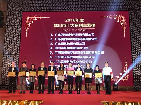 浪鲸荣获年度佛山十大专利富豪企业
