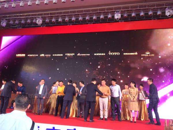 浪鲸卫浴董事长霍成基登台领奖(居中者)