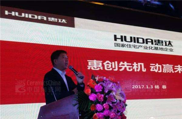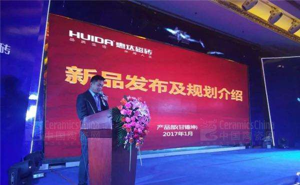 产品部总监甘锡坤做2017年新品发布及规划介绍,让经销商家人们感受到了惠达磁砖的产品创新研发速度和产品竞争优势。
