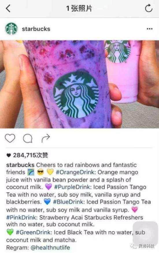 当图片社交蔚为风潮的时候,星巴克便挑选了Instagram作为合作伙伴,创造了著名的“隐藏菜单”风潮。星巴克的Instagram官方账号管理员曾经贴过一杯橘色渐层冰饮的照片,当粉丝们纷纷留言问起这是什么,管理员在问答互动时说,这是“覆盆子糖浆”,可以加在不同的饮品中,例如把香草星冰乐换成覆盆子星冰乐。