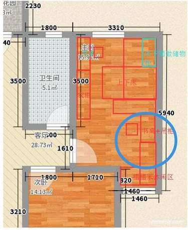 空间设计需求:儿童房,两个孩子,想放高低床,卧房铺木地板,想要储物空间大些,需要有个书桌,也想给孩子多些活动的空间