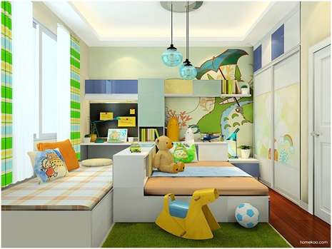 科学合理地装修儿童居室,对培养儿童健康成长,养成独立生活能力,启迪他们的智慧具有十分重要的意义。在儿童房的设计与色调上要特别注意安全性与搭配原理。实际上,在孩子需要独立的生活空间之前,儿童房更应该像一个游乐场,让他们可以随心所欲地玩耍,发挥自己的想象来探求周围的秘密。