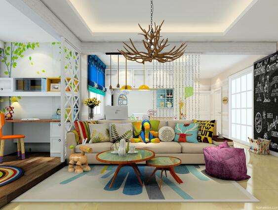 配色上面采用多种小孩子喜欢的颜色,新的撞色潮流,让这个空间更加的色彩斑斓。